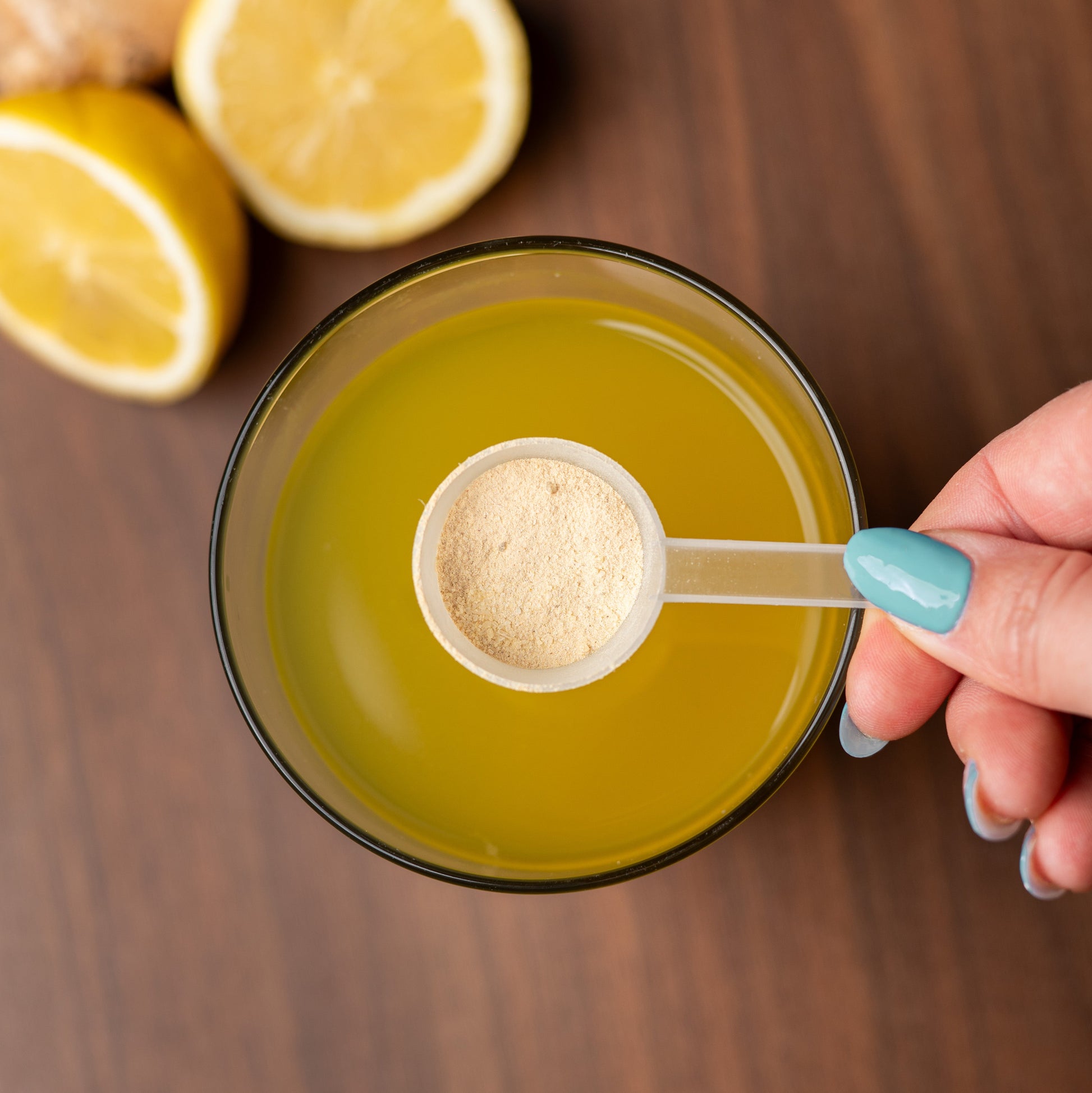 Los 1 maatschep (5 g) op in 180 ml water en roer goed. Aanbevolen gebruik: 1 portie per dag.